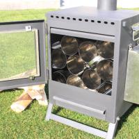 オーブン料理でキャンプが盛り上がる薪ストーブ薪ストーブ冬の寒い時期のキャンプやアウトドアで使える頑丈でスリムな縦型の薪ストーブ。