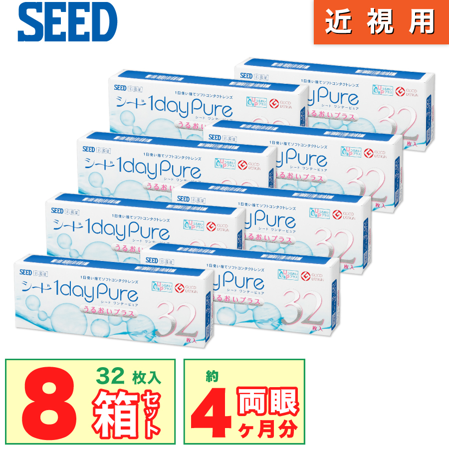 あすつく 最安挑戦 ワンデーピュアうるおいプラス 8箱 (1箱32枚) 最短当日発送 国産 コンタクトレンズ 1day pure シード 1日使い捨て UVカット ONE DAY