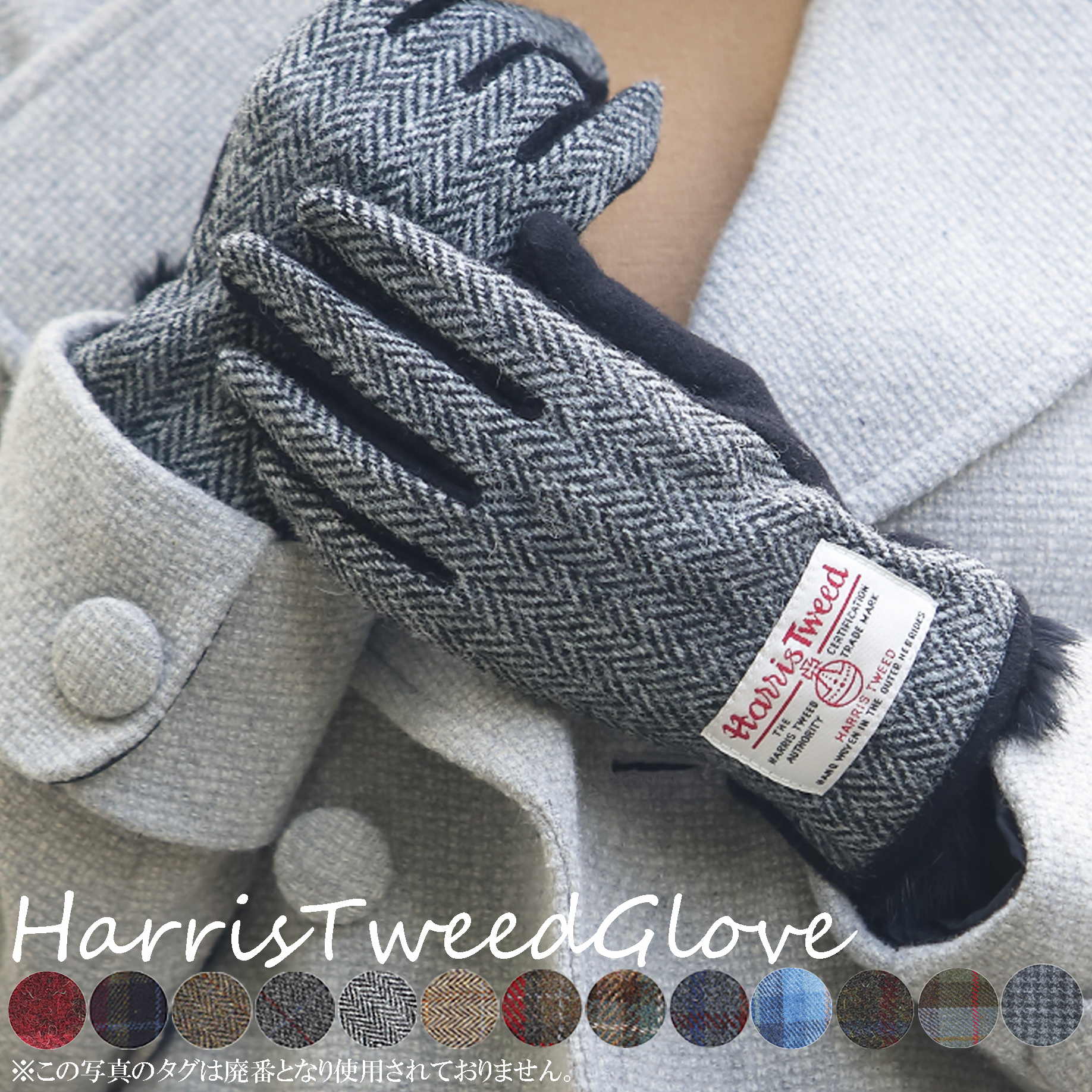★ハリスツイード★ファー付 スマホ対応 ニット手袋 レディース 女性 ファッション プレゼント クリスマス