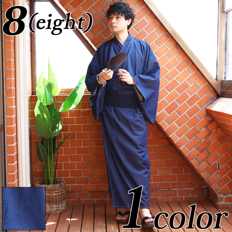 デニム着物 メンズ 着物 デニム きもの 全1色 新作 着物 着物 メンズ 綿 コットン インディゴ ブルー シンプル 花火 祭り 街歩き 海 花火大会 キレカジ系 8(eight) エイト 8