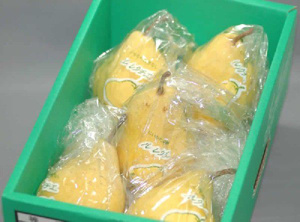 収穫時は他の洋ナシと同様に緑色をしておりますが、収穫後数日間追熟する事により、独特の甘さが出ます。