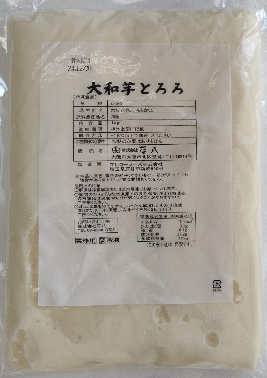 風味の良い国産大和芋を100%使用し、殺菌・すりおろし後急速凍結した商品です。
