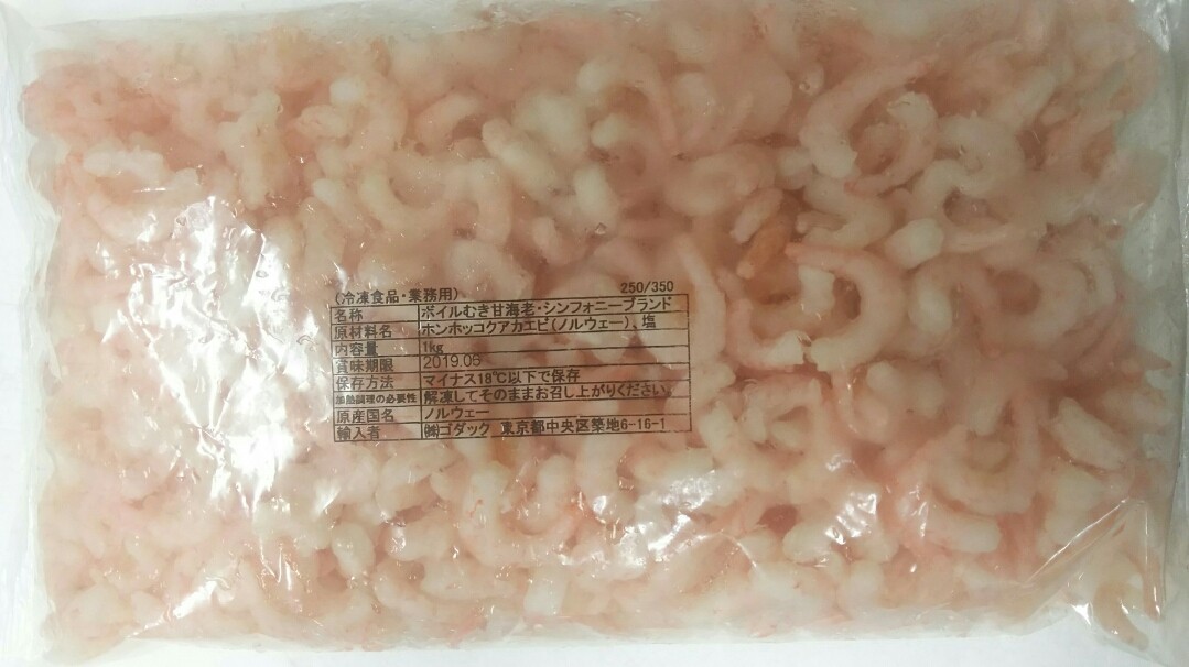 ボイルむき甘海老(シンフォニーブランド)1kg(600-700個)×8P(P2600円税別) 業務用 ヤヨイ ゴダック