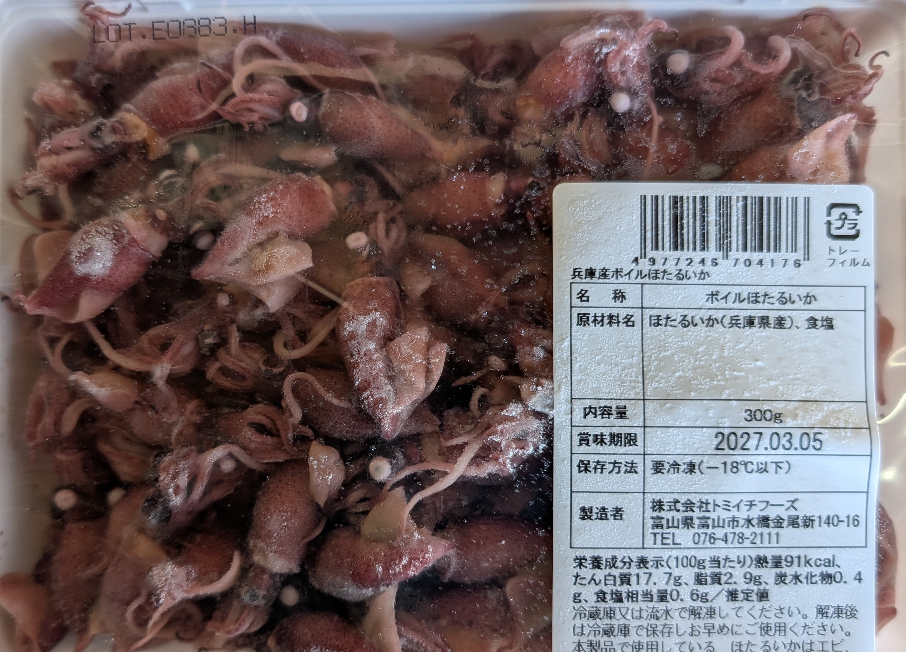 国産のほたるいかをふっくら茹でて冷凍してあります。