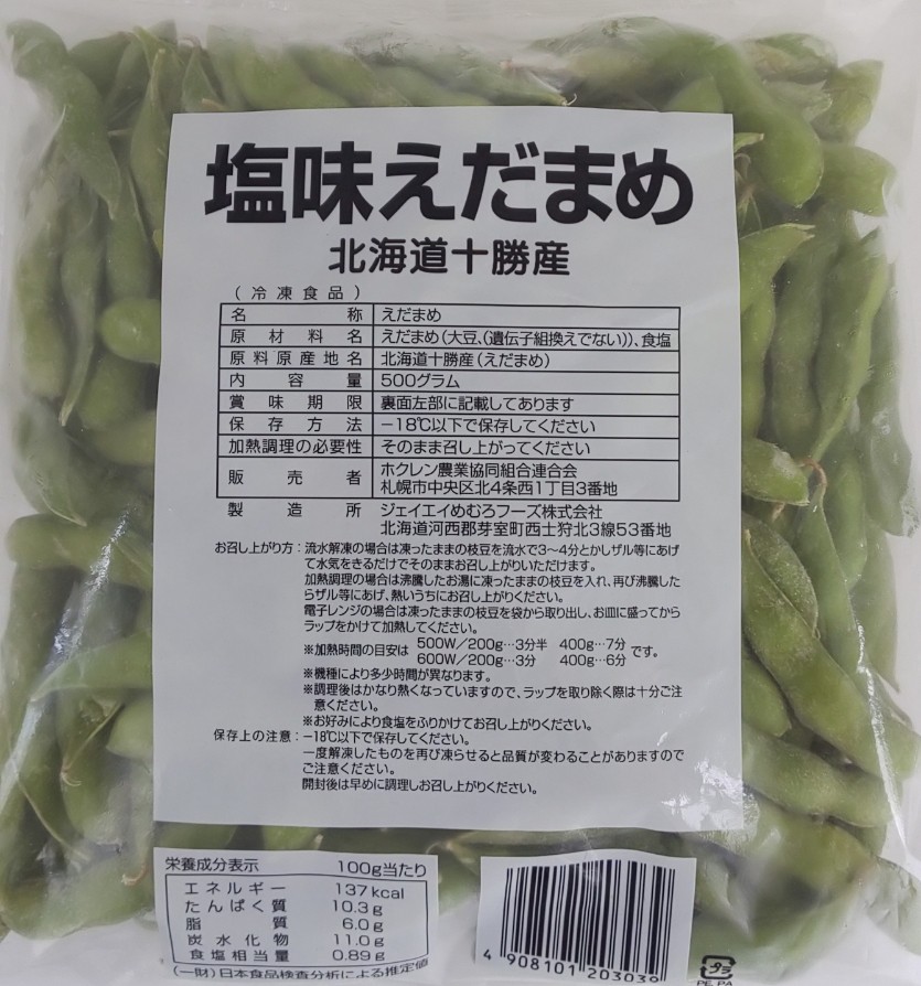 ホクレン 北海道産 十勝の塩味えだ豆 500g×40P(P600円税別) 業務用 ヤヨイ