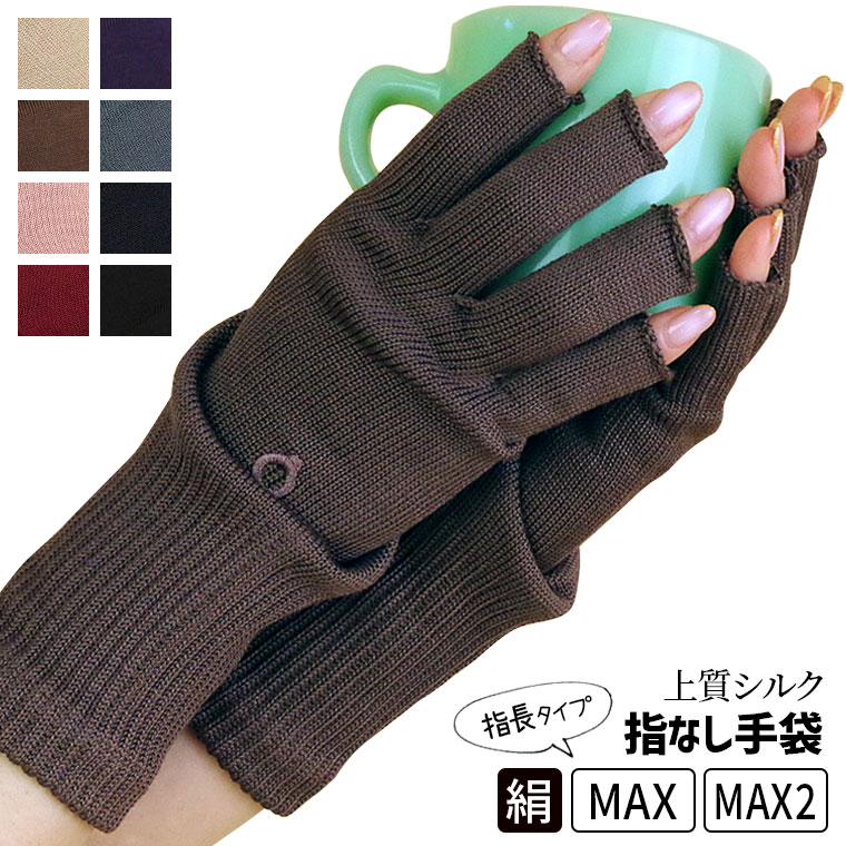 | 特徴 | ・指と手首を保温するシルク手袋。 ・「指なし」なので室内用の作業手袋として重宝。とても動きやすいです。 ・「MAX」とは?ハンドウォーマーLサイズの指だけを長くした、当店オリジナルサイズ。 ・スマートフォン対応手袋(スマホ手袋)として絶大な支持。 ・指先が出ているので、出ていない手袋に比べてスマホの反応が抜群。 ・薄手なのにあたたかい最大の理由は、手首が長いこと。手首のゴムを抜いて、きつさコントロール可能。 ・指の長さが選べる!MAX2はすべての指+1.5cmで指先ちょこん。 ・[シルクの特徴] 冬は温かく、夏は涼しい天然素材。 ・[シルクの特徴] 天然のUVカット機能で、紫外線対策に適している。 ・[シルクの特徴] 優れた吸放湿性。手汗に悩む方はサラサラを実感。 ・[シルクの特徴] 人間の皮膚に最も近い成分。手に優しいので手荒れに最適。 ・様々なシーンで大活躍(おやすみ時・手荒れ・手湿疹対策・保温・UVカット・大きめ手袋のインナー・指の関節痛対策・マラソン・ウォーキング・自転車の運転・液晶タブレット) |