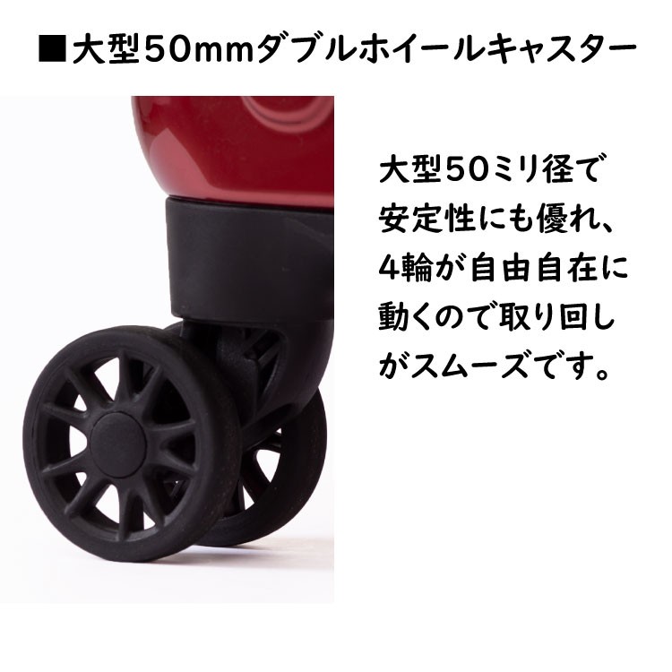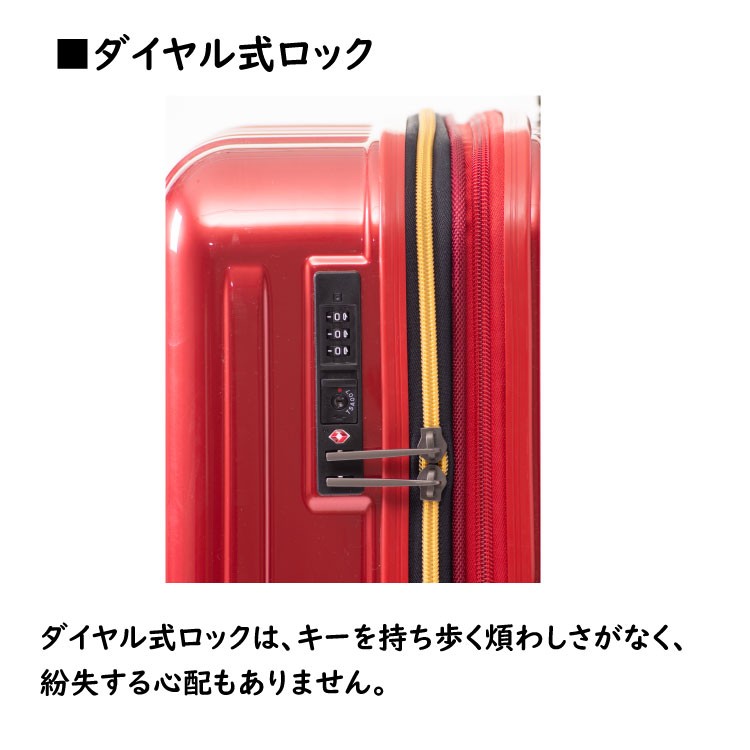 ポリカーボネイト100% / 拡張ファスナー/50ミリ径ダブルホイールキャスター / ファスナータイプ / ダイヤル式ロック