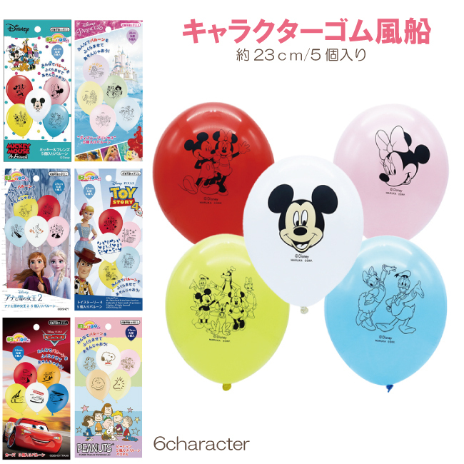 送料無料 バルーン ゴム風船 23cm5個入り ミニー ミッキー プリンセス トイストーリー アナと雪の女王 カーズ PEANUT スヌーピー