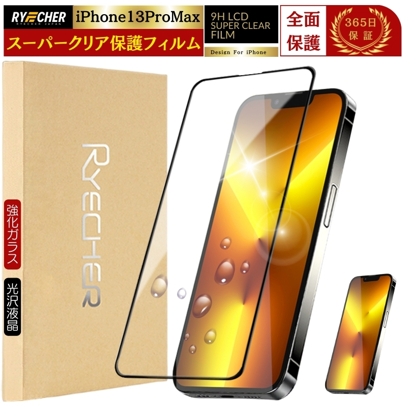 【全面保護・スーパークリア】 iPhone13ProMax フィルム 全面保護 iPhone 13 Pro Max ガラスフィルム 強化ガラス iPhone13 ProMax 保護フィルム 全面 アイフォン13プロマックス スマホフィルム クリア光沢 保護シート アイホン グレア RYECHER 液晶保護フィルム