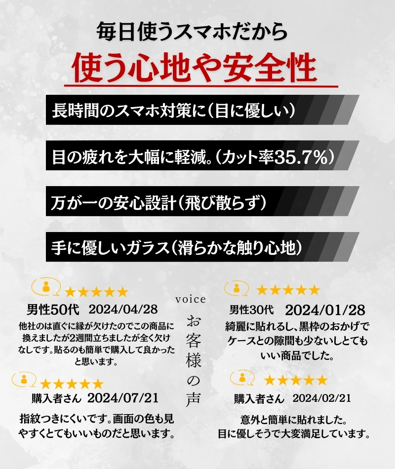 特殊コーティングによるタッチ感度抜群・すべすべな滑り感の 高品質ガラスフィルム をお客様に提供します。