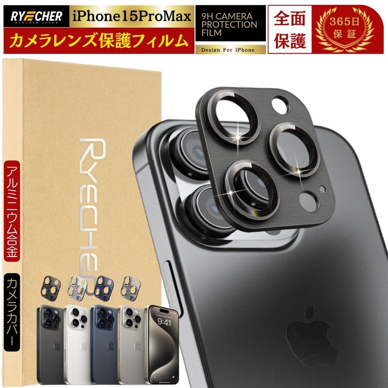 iPhone 15 Pro Max レンズカバー iPhone15 Pro Max カメラカバー iPhone15Pro Max カメラ保護 iPhone15ProMax ガラスフィルム カメラフィルム レンズフィルム カメラ レンズ 保護フィルム 全面保護 RYECHER アイフォン 15 プロマックス アルミ合金製 フィルム