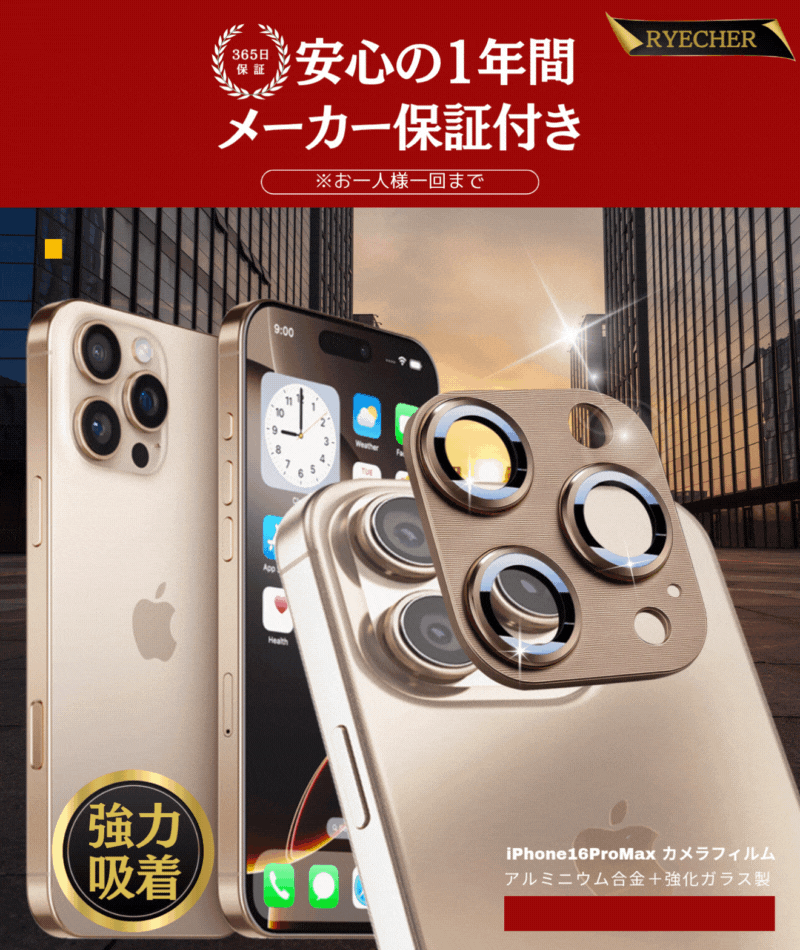 iPhone16 Pro Max カメラカバー iPhone 16ProMax カメラレンズカバー iPhone16ProMax カメラレンズ保護 アイフォン16プロ マックス レンズカバー iPhone16ProMax カメラフィルム 16 プロマックス 金属 アルミ RYECHER カメラ保護フィルム 全面保護 ガラスフィルム