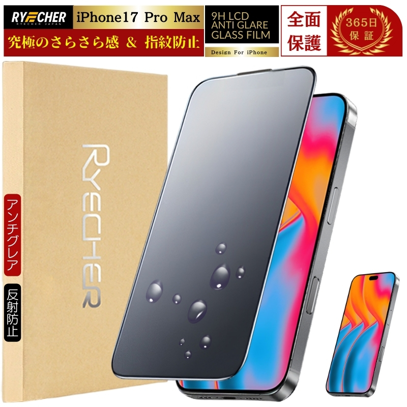 【指紋防止・アンチグレア】 iPhone17Pro Max ガラスフィルム さらさら 全面 iPhone17ProMax 保護フィルム マット iPhone 17 Pro Max フィルム アンチグレア 全面保護 反射低減 アイフォン 17 プロ マックス ゲーム RYECHER 液晶保護フィルム