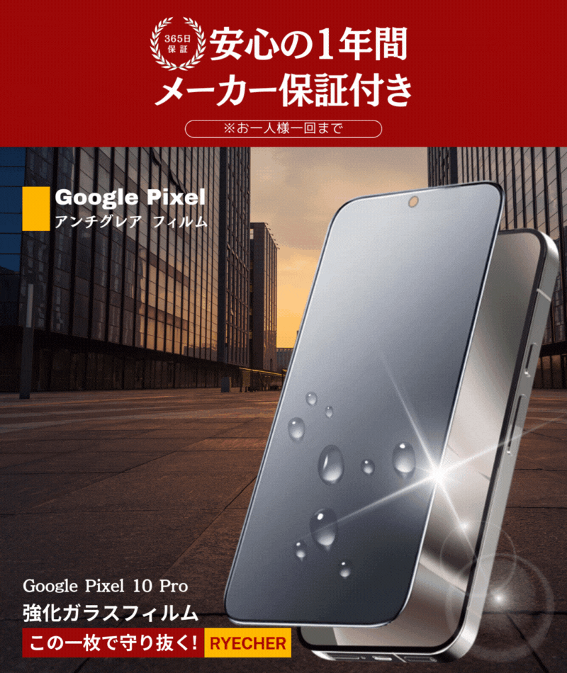 ◎◎◎蛍光灯や太陽光の反射など「ギラギラ感」をなくす反射防止フィルム、指紋がつきにくい指紋ゼロ設計。ノッチまで守る全面保護タイプは、縁までスクリーンを保護した上、Google Pixel本体との一体感を高め、美しさを引き出せます。さらにラウンドエッジ加工が施され、スライドしても引っかかり感がなく、裸さながらの質感を実現します。自動吸着タイプで貼り付け時に心配はありません!RYECHER アンチグレアPixel 10 Pro(反射防止)バージョン、ついに登場。
