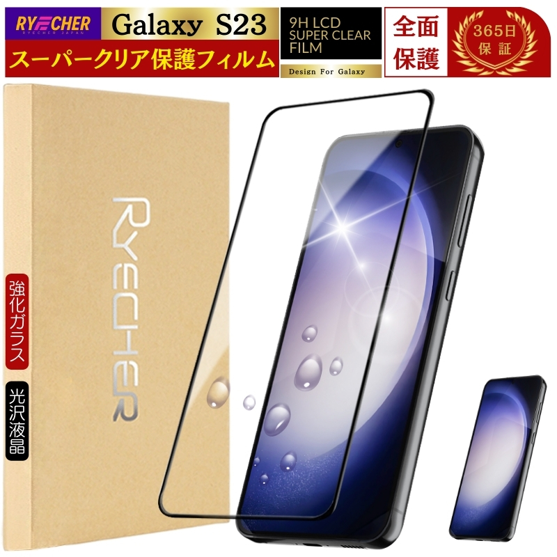 【 スーパークリア 全面保護 】 Galaxy S23 ガラスフィルム 全面 GalaxyS23 SC51D フィルム グレア ギャラクシー SC-51D 保護フィルム 全面保護 ギャラクシーS23 液晶フィルム 強化ガラス RYECHER 黒縁 サムスン SCG19 クリア 保護シート 液晶保護フィルム