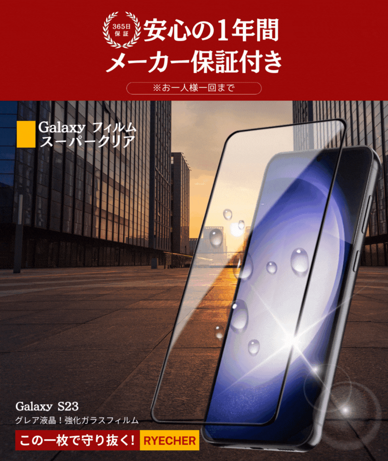 ◎◎◎光沢液晶の画面がツヤツヤピカピカであることだ。リアルで鮮明な映像体験!静止画や映像がとてもキレイに見えるのがメリット。【 高精度の顔認証を実現】精度の高い赤外線センサーでスムーズな顔認証できる点もメリットの一つです。フィルムは自動吸着タイプなので、貼り付け時にスマートフォン液晶の汚れやホコリをしっかり除去してください!RYECHER Galaxy S23 光沢 液晶(スーパークリア)バージョン、ついに登場。