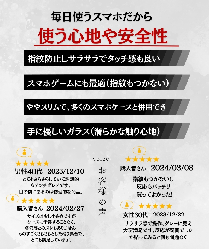 ★指紋がお気になる方に〜おすすめのフィルム!超サラサラ指滑りのアンチグレアフィルムが 画面を守ります。店長今迄 一番好きな液晶保護フィルムタイプで、特殊コーティングによる至極の指すべりの 高品質ガラスフィルム をお客様に提供します。 家電量販店や携帯ショップで販売される 5.000円の 高級品 と同等のパフォーマンスに、きっと驚くはず。