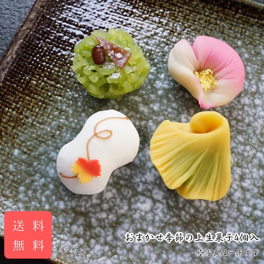 おまかせ季節の上生菓子4個入 送料無料 父の日 誕生日 プレゼント 練り切り 和菓子 ギフト 贈り物 贈答 クーポン 本格派 両親 お取り寄せ ご褒美 おやつ