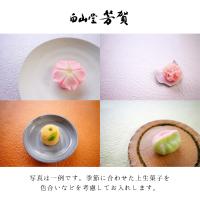 お届けの生菓子は季節に合わせたものを彩りなど考慮しつつお選びしています。