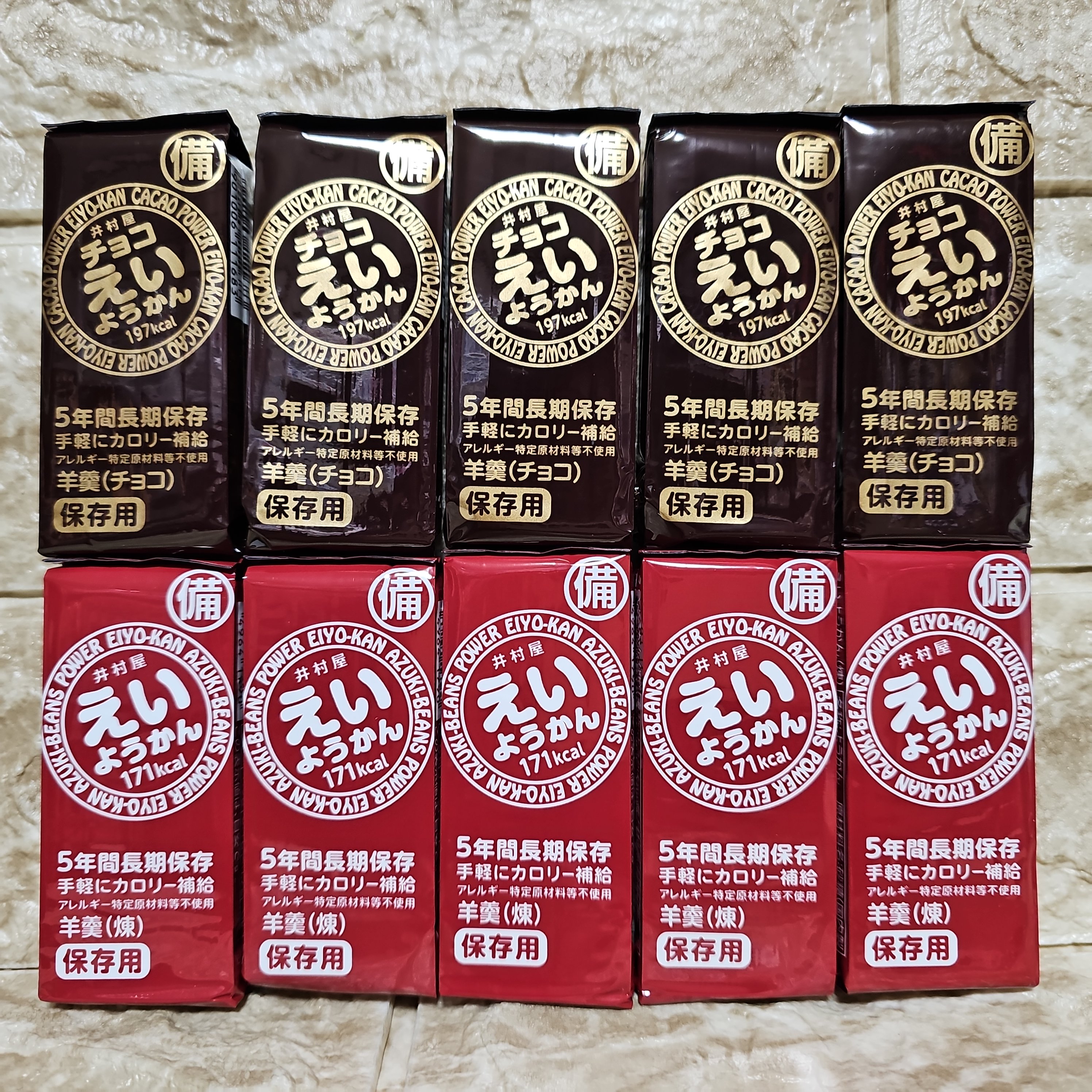 2種各5本 10本セット えいようかん 井村屋 チョコえいようかん 煉 プレーン チョコ 保存食 非常食