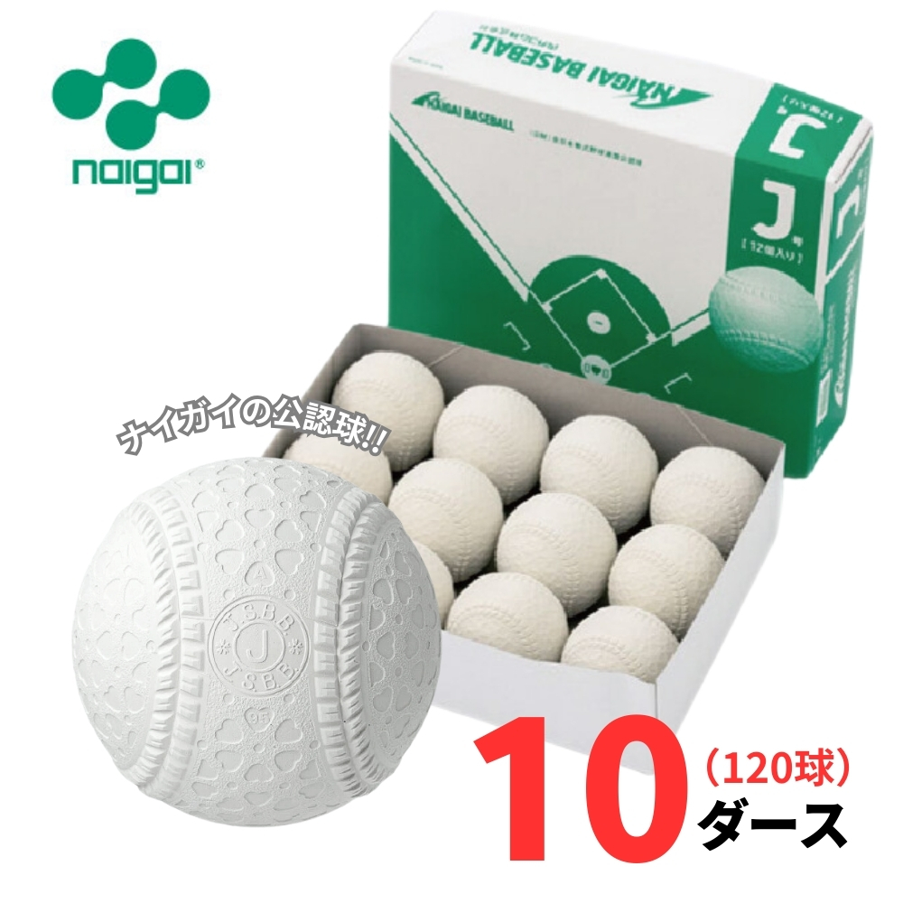 【公認球】ナイガイ 軟式野球ボール 公認球 J号 10ダース(120球) 学童・小学生向け J球 ジュニア 試合球【抗菌】【送料無料】 ラッピング不可