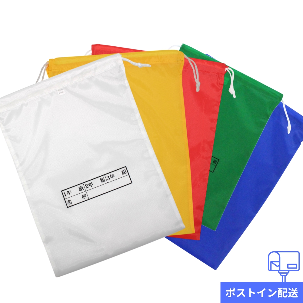 【ポストイン配送】【送料無料】上履き入れ・体育館シューズ袋 (ホワイト/レッド/イエロー/グリーン/ブルー) 体操服入れ 学年色 ラッピング不可