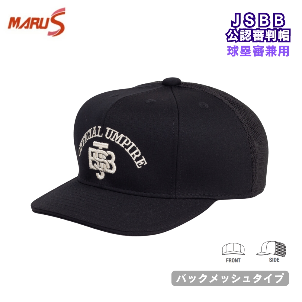 【JSBB公認】マルエス 野球審判帽子 (球審・塁審兼用) バックメッシュ 八方型 ブラック 審判用品 ラッピング不可