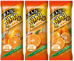 かん味のアイスキャンディーに、シャリシャリ食感のジューシーなみかんかき氷を入れたアイスキャンディー。みかん果汁44%使用。