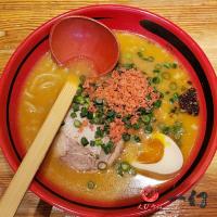 スープ ポークエキス、しょうゆ、ポークオイル、砂糖、食塩、植物油脂、魚介エキス調味料、練ごま、海老醤、魚介パウダー、にんにく、しょうが、すりごま、香辛料、調味料(アミノ酸等)、酒精、着色料(カラメル)、甘味料(天草)、酸味料、(原材料の一部にえび、豚肉を含む)