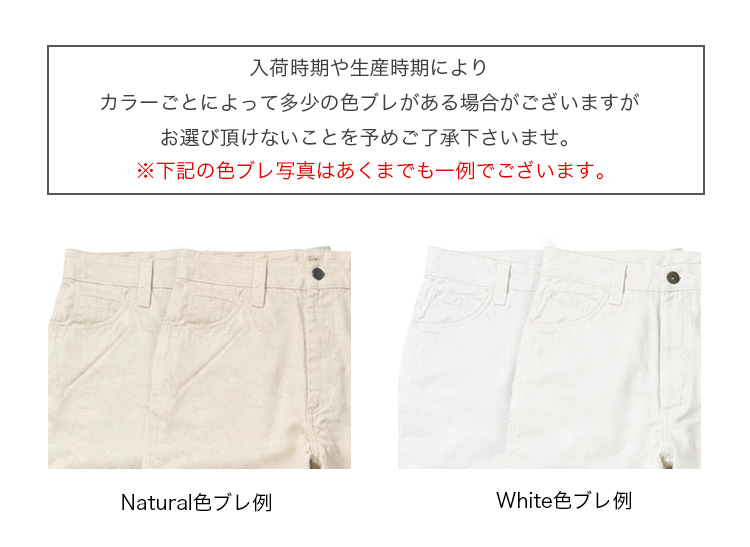 ラフな風合いのコットンツイル生地を採用し、抜け感のあるカジュアルライクな雰囲気を演出。カラーは爽やかなオフホワイトと、あたたかみのあるナチュラル(キナリ)の2色をラインナップ。季節問わず着回せ、ワークからきれいめスタイルなど幅広いコーデに活躍する一本です。