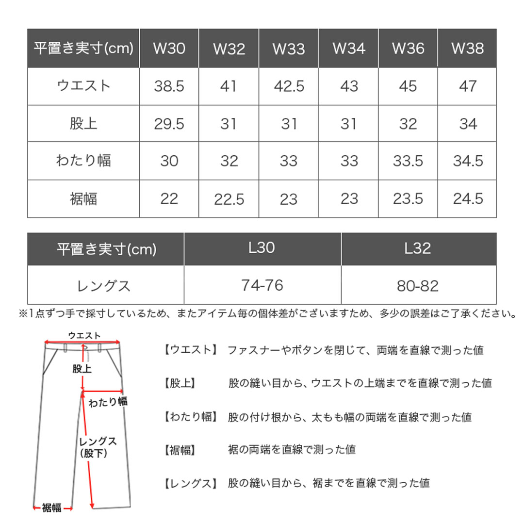 ウエスト:W30/W32/W33/W34/W36/W38