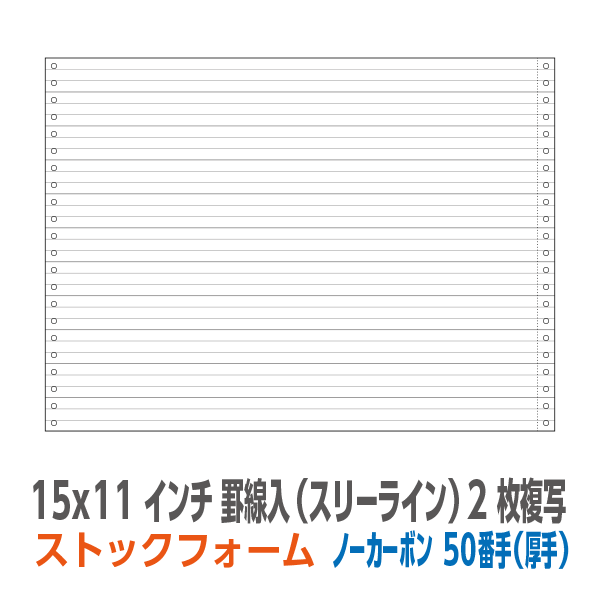 ストックフォーム 15×11インチ 2枚複写 2P 厚手用紙 罫線入 スリーライン 1,000枚/箱 連続用紙