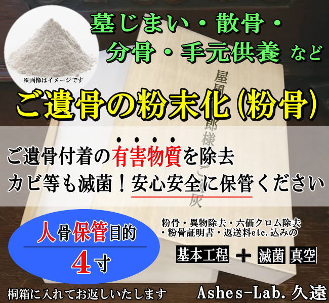 骨壺4寸 粉骨【人骨/(1)納骨前/B保管目的】ご遺骨パウダー加工 パウダー化 ご遺灰 墓じまい 手元供養 分骨 お墓引っ越し ペット 無害化 無害処理