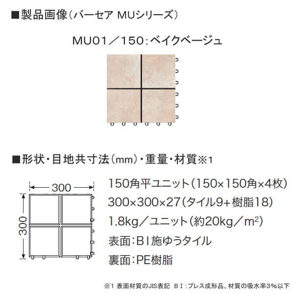 | 材質※1 | 表面:BI施ゆうタイル 裏面:PE樹脂 |