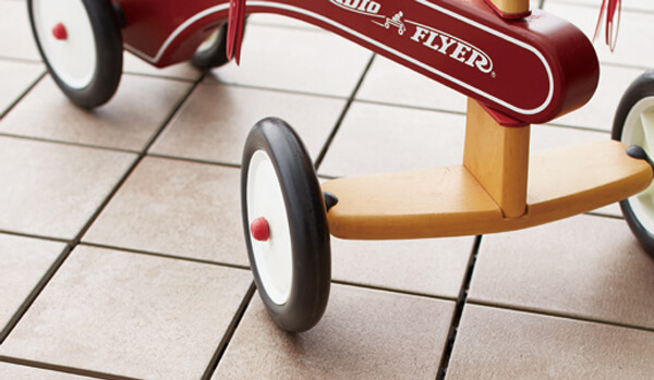 タイルなのでデッキブラシでこすっても傷みにくく、日常的な土汚れが水洗いでさっと落ちやすいのでお手入れラクラク。また水はけのよい構造なので日常のお手入れによりバルコニーを清潔に保ちます。