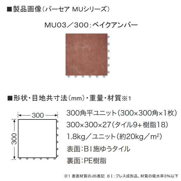 | 材質※1 | 表面:BI施ゆうタイル 裏面:PE樹脂 |