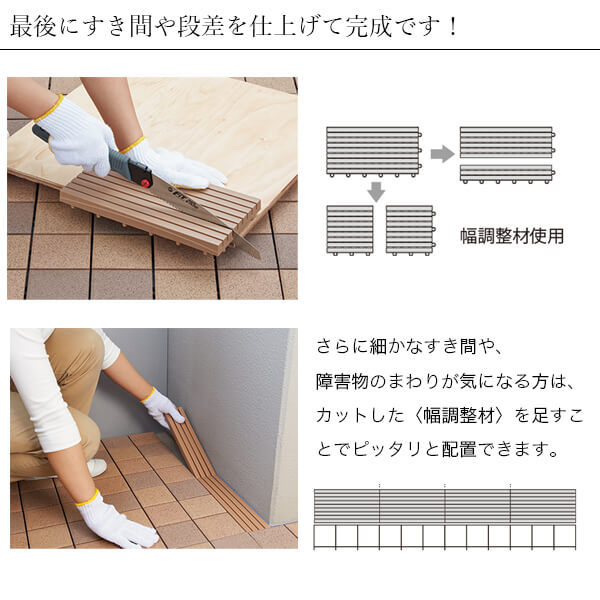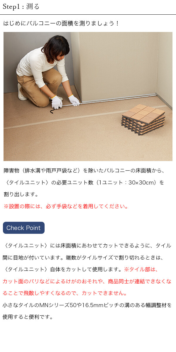 パズルをはめ込むように設置するだけ!誰でもかんたんに完成度の高い、納得のバルコニーづくりが可能です。