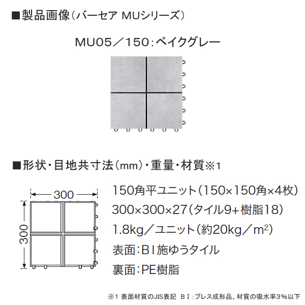 | 材質※1 | 表面:BI施ゆうタイル 裏面:PE樹脂 |