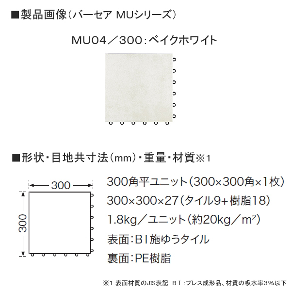 | 材質※1 | 表面:BI施ゆうタイル 裏面:PE樹脂 |