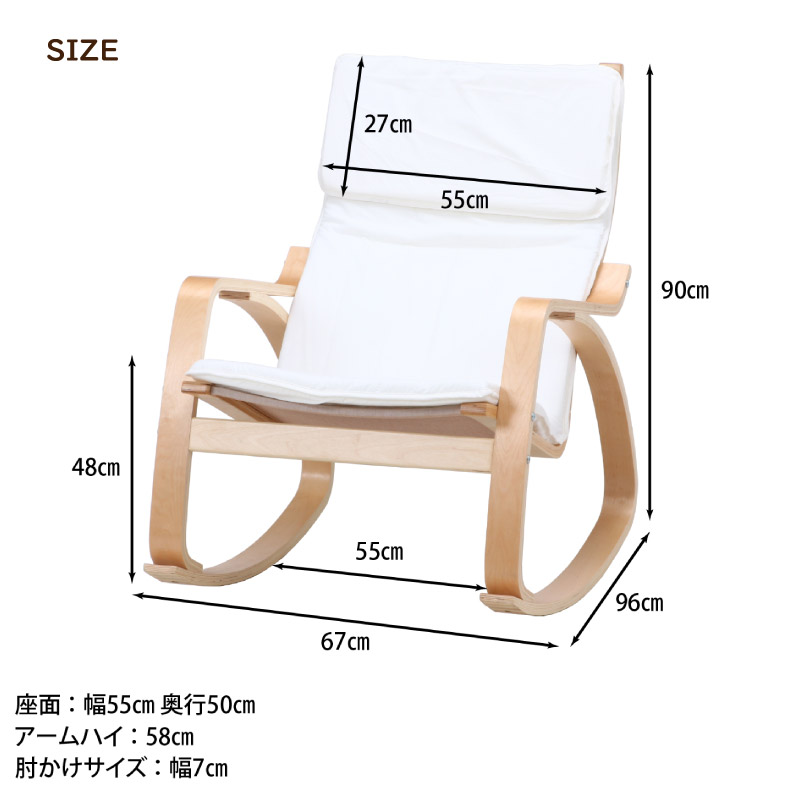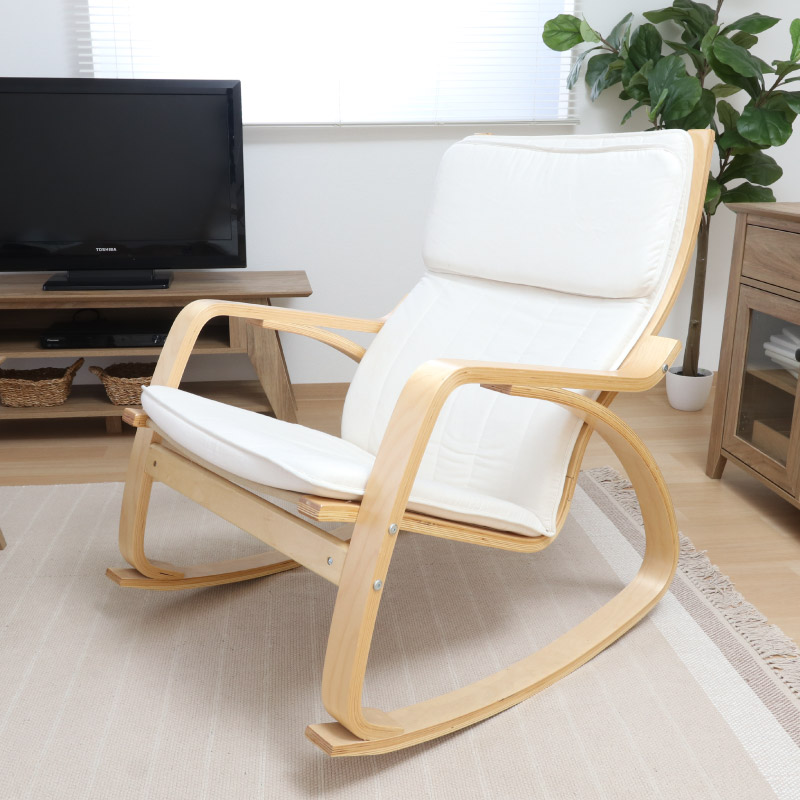 リラックスチェアー スリム アイボリー ロッキングタイプ 揺れ椅子 木製チェア おしゃれ レトロ デザインチェア お客様組立【メーカー直送】【代金引換不可】【北海道沖縄その他離島配送不可】