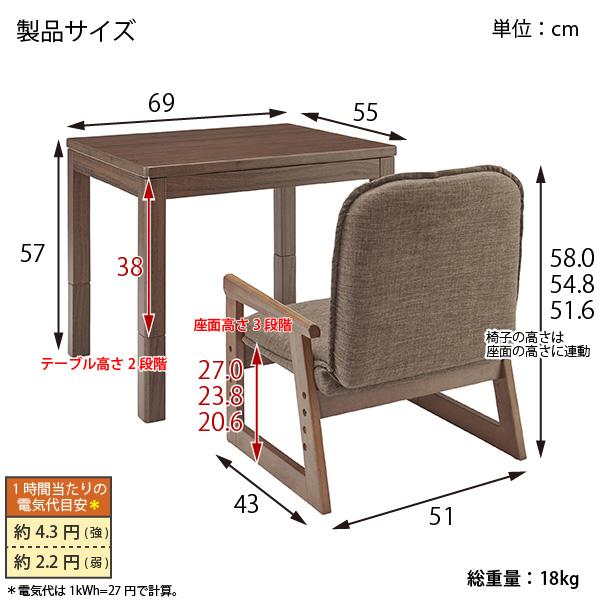 サイズ | こたつ:幅69×奥行55×高さ38(57)cm |