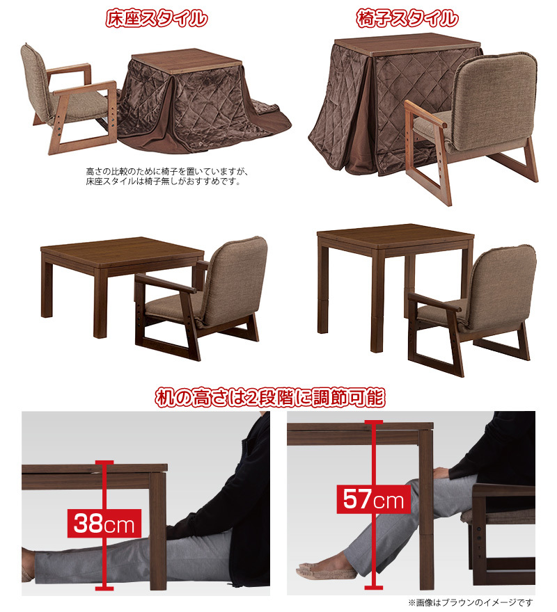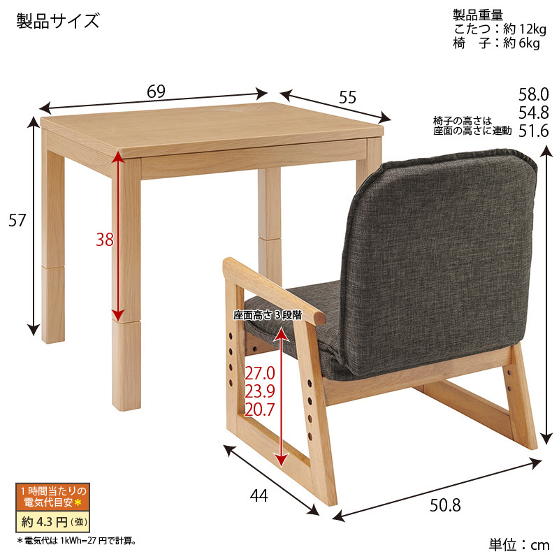 サイズ | こたつ:幅69×奥行55×高さ38(57)cm |