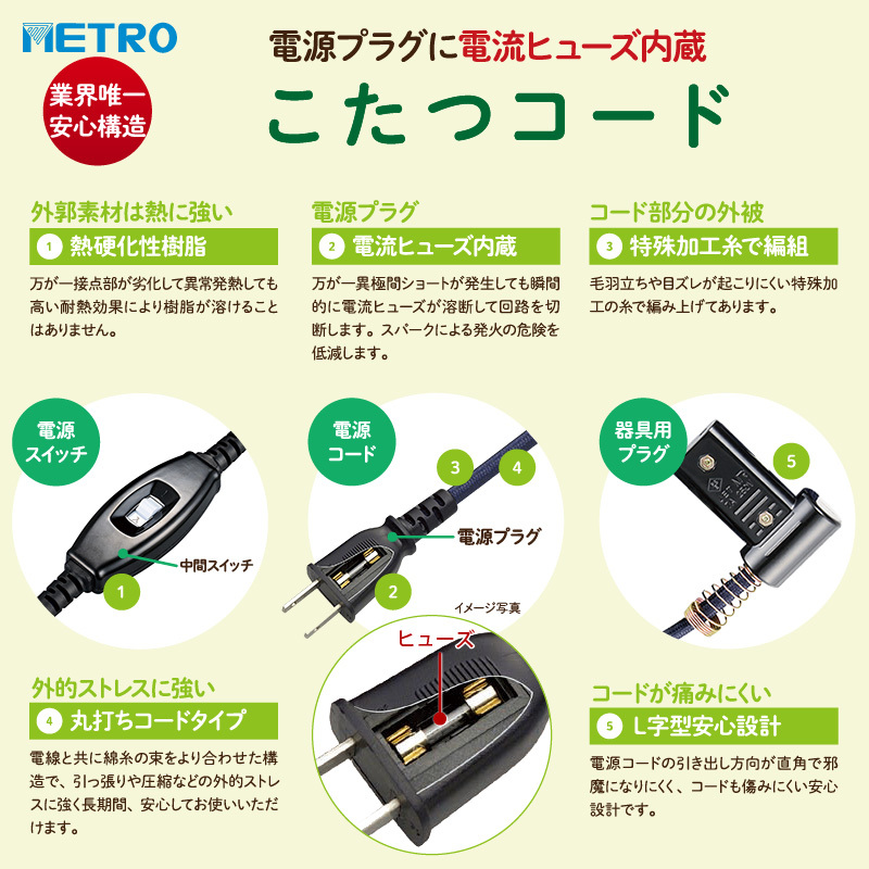 ※4・・・電源コード交換の際にはメトロ電気工業製こたつコード「BC-2PL」をお買い求めください。