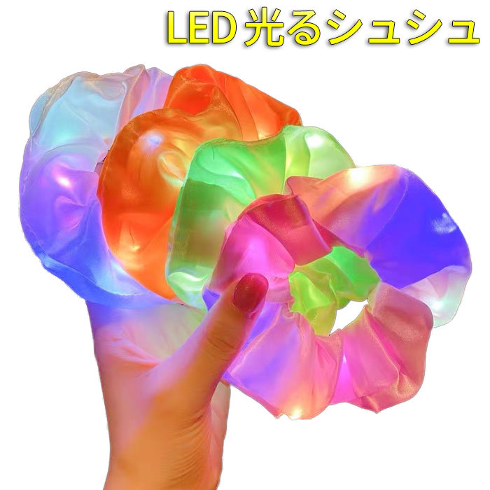 LEDシュシュ 光る シュシュ shushu おしゃれ ヘアアクセサリー ヘアゴム シンプル 夜道 安全 フェス ブレスレット ブレス イベント 親子ペア ネオン ダンス コスプレ LED 大人 子供 夏祭り Halloween 光るグッズ コンサート パーティグッズ 景品 お祭りグッズ 夜 ハロウィン クリスマス コスプレ
