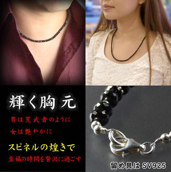 | 【4mm】光沢ブラックスピネル ネックレス 男性用45cm〜50cm 女性用37cm〜45cm |