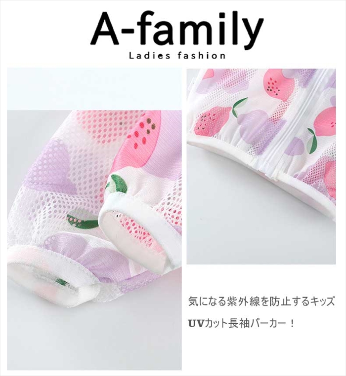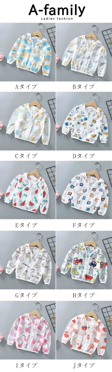 | 商品説明 | 気になる紫外線を防止するキッズUVカット長袖パーカー! 暑い季節にもサラッと快適な速乾DRY素材。薄手のレース生地で涼しく羽織れて、軽量&小さくたためるのでバッグに入れても邪魔になりません。 フロント全開のファスナータイプでさっと羽織れて体温調節も自在。 プリントのバリエーションが豊富で兄弟姉妹でおそろいコーデも可能です。 |