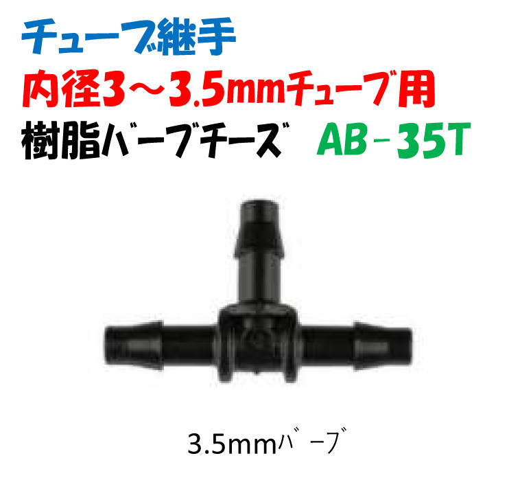 チューブ継手 内径 3〜3.5mm 樹脂バーブチーズ AB-35T 3.5mmバーブ三方向
