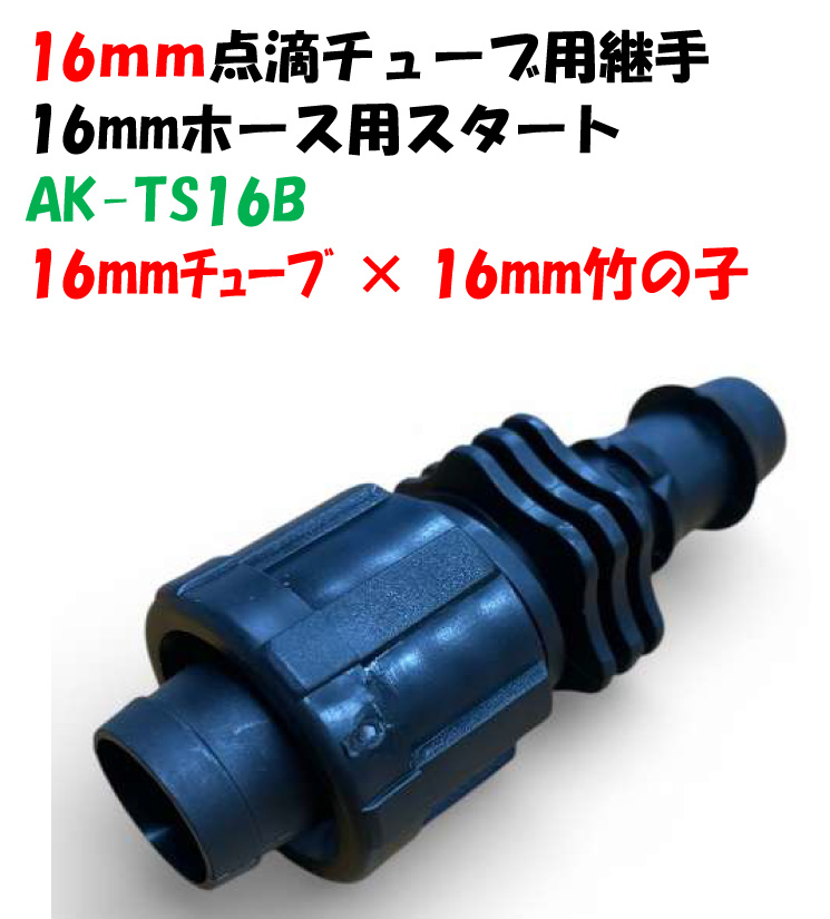 点滴チューブ、潅水チューブ、ドリップチューブ用 ホース用スタート 16mmチューブ × 16mm竹の子 AK-TS16B 継手 Palaplast 水道ホース