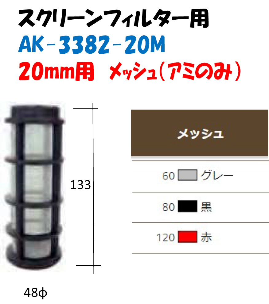 スクリーンフィルター用 交換メッシュ AK3382-20M 取付口径 20mm 交換あみ