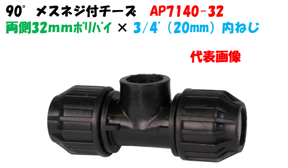 立上り付チーズ AP7140-32 外径32mm ポリ × 3/4” メス (20mm) × ポリ ポリエチレンパイプ継手 90°メスネジ付チーズ